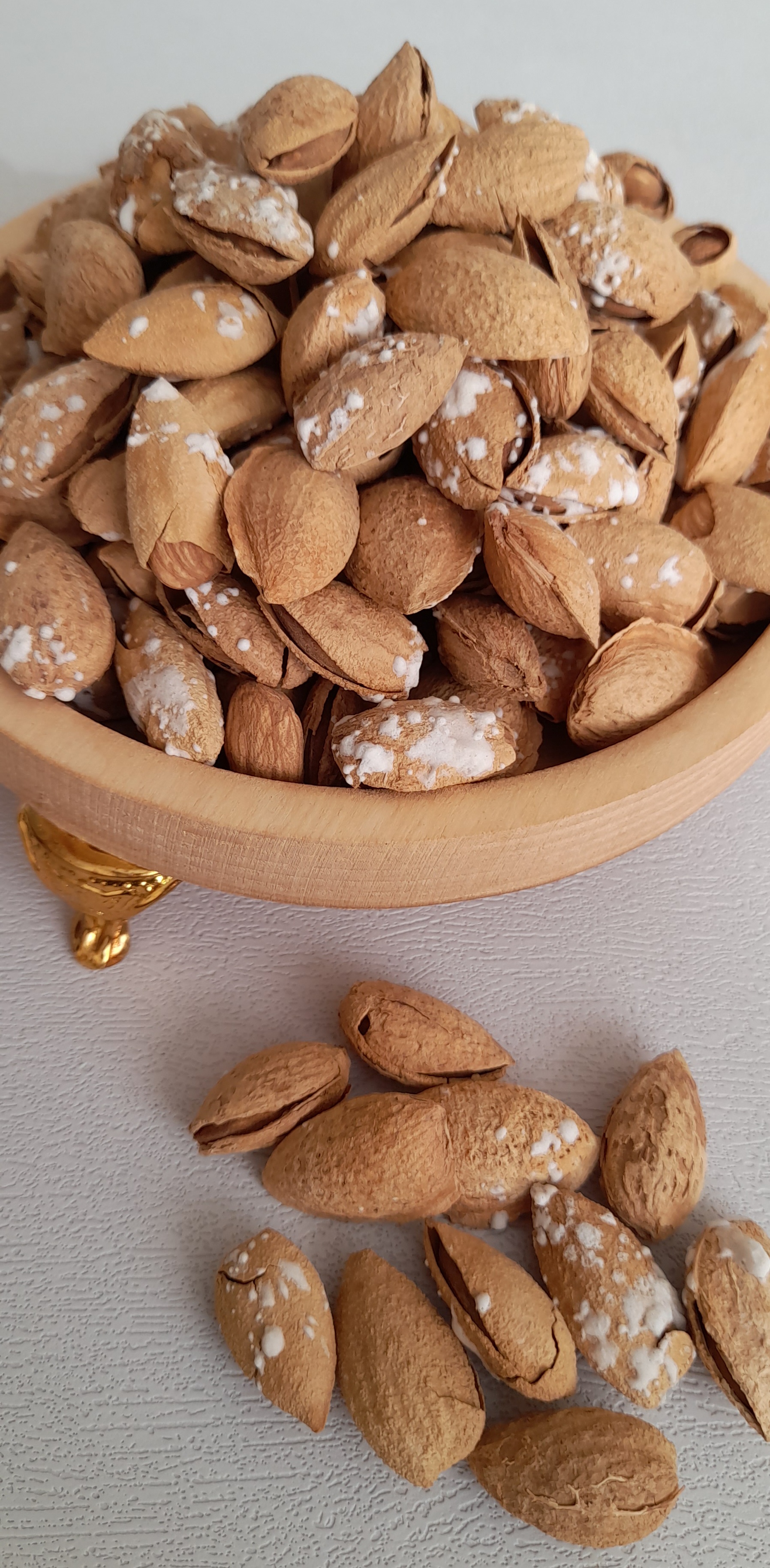 بادام منقا :در لغت نامه دهخدا منقا به معنی پوست نازک است.بادام منقا به بادامی گفته می شود که پوست نازکی دارد و مصرف آن خیلی راحت است، به همین دلیل طرفداران زیادی دارد.پس از مغز گردو،فندق و پسته، بادام بیشترین مقدار انرژی را دارد و همچنین از نظر میزان پروتئین بسیار غنی می باشد.از همین جهت این محصول یکی از منابع اصلی تامین انرژی و پروتئین مورد نیاز بدن می باشد و جهت تغذیه کودکان و نوجوانان بسیار مناسب است. این آجیل خوشمزه به جهت آن که از نظر فسفر بسیار غنی می باشد نیز برای تقویت استخوان ها در کودکان مفید می باشد و از پوکی استخوان جلوگیری می کند.مغز بادام همچنین حاوی چربی های سالم، فیبر،روی، سلنیوم، ویتامین E ، کلسیم،منیزیم،منگنز و مس می باشد که از عناصر ضروری برای سلامت بدن انسان به شمار میرود.در واقع می توان گفت مغز بادام یک بمب انرژی برای بدن انسان است که بسیاری از نیازهای ضروری بدن انسان را تامین می نماید.