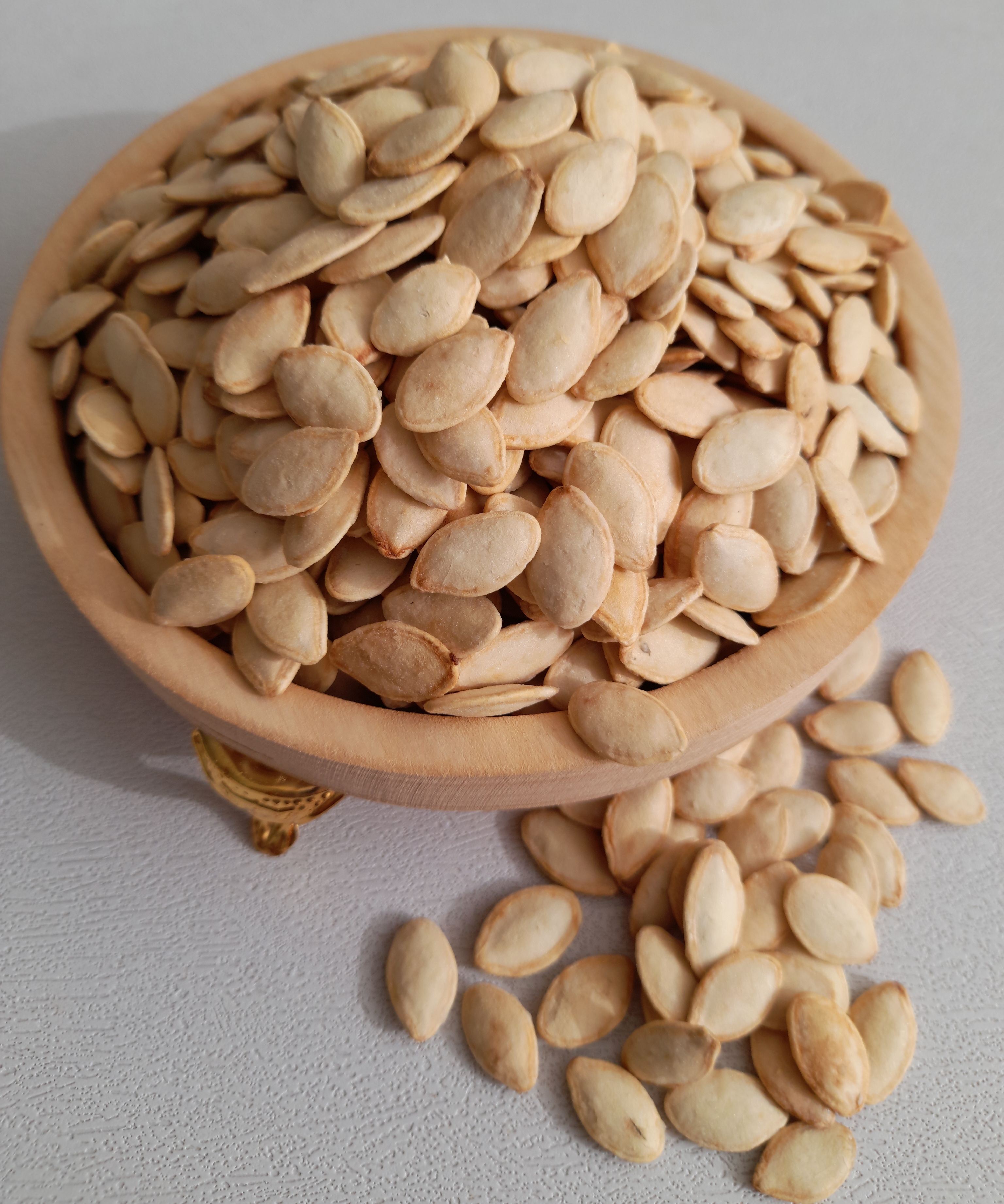 تخمه کدو سرشار از مواد مغذی است و فواید بسیاری برای بهبود باروری، سلامت قلب و کنترل قند خون دارد. تخمه کدو با وجود حجم کم، خواص بسیار زیادی دارد ، خوردن تنها مقدار کمی تخمه کدو می تواند میزان قابل توجهی از چربی های سالم، منیزیم و روی مورد نیاز بدن را تامین کند. به این دلایل، تخمه کدو به خاطر فواید بسیاری که برای سلامتی دارد می تواند به بهبود سلامت قلب و پروستات کمک کرده و از بدن در برابر برخی سرطان های خاص محافظت کند. ۱. سرشار از مواد مغذی ۲. آنتی اکسیدان بالایی ۳. کاهش خطر ابتلا به برخی سرطان ها از خواص دیگر تخمه کدو ۴. بهبود سلامت پروستات و مثانه از خواص تخمه کدو ۵. منیزیم بسیار بالا از خواص تخمه کدو ۶. سلامت قلب را بهبود می بخشد ، تخمه کدو، دانه ای بسیار مغذی و سرشار از آنتی اکسیدان های قوی است. مصرف این دانه می تواند به رفع کمبودهای غذایی کمک کرده و از بدن در برابر مشکلات مختلف محافظت کند.