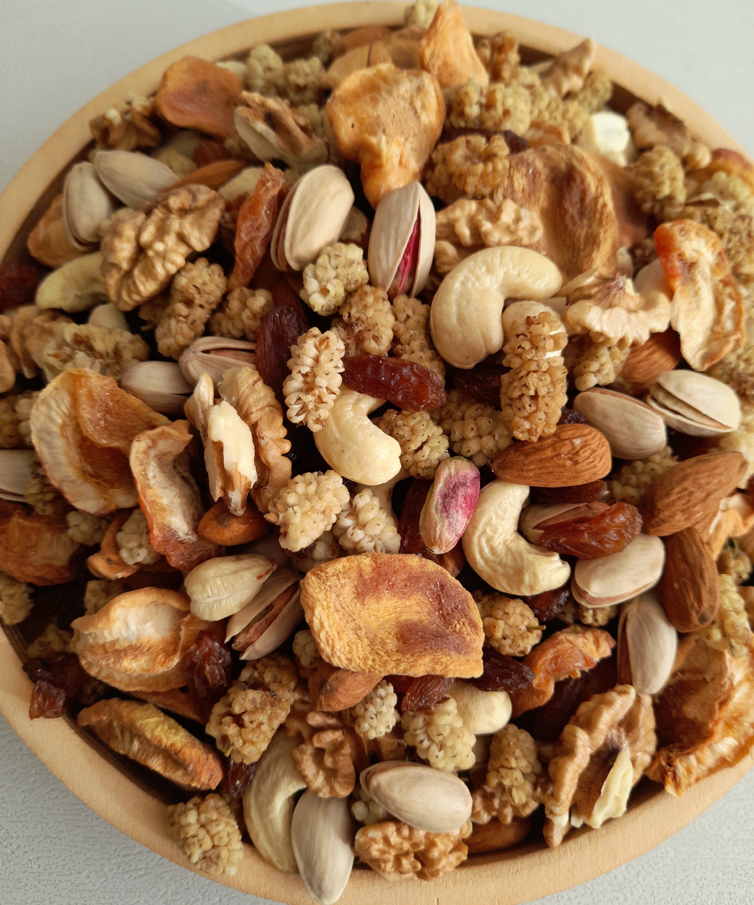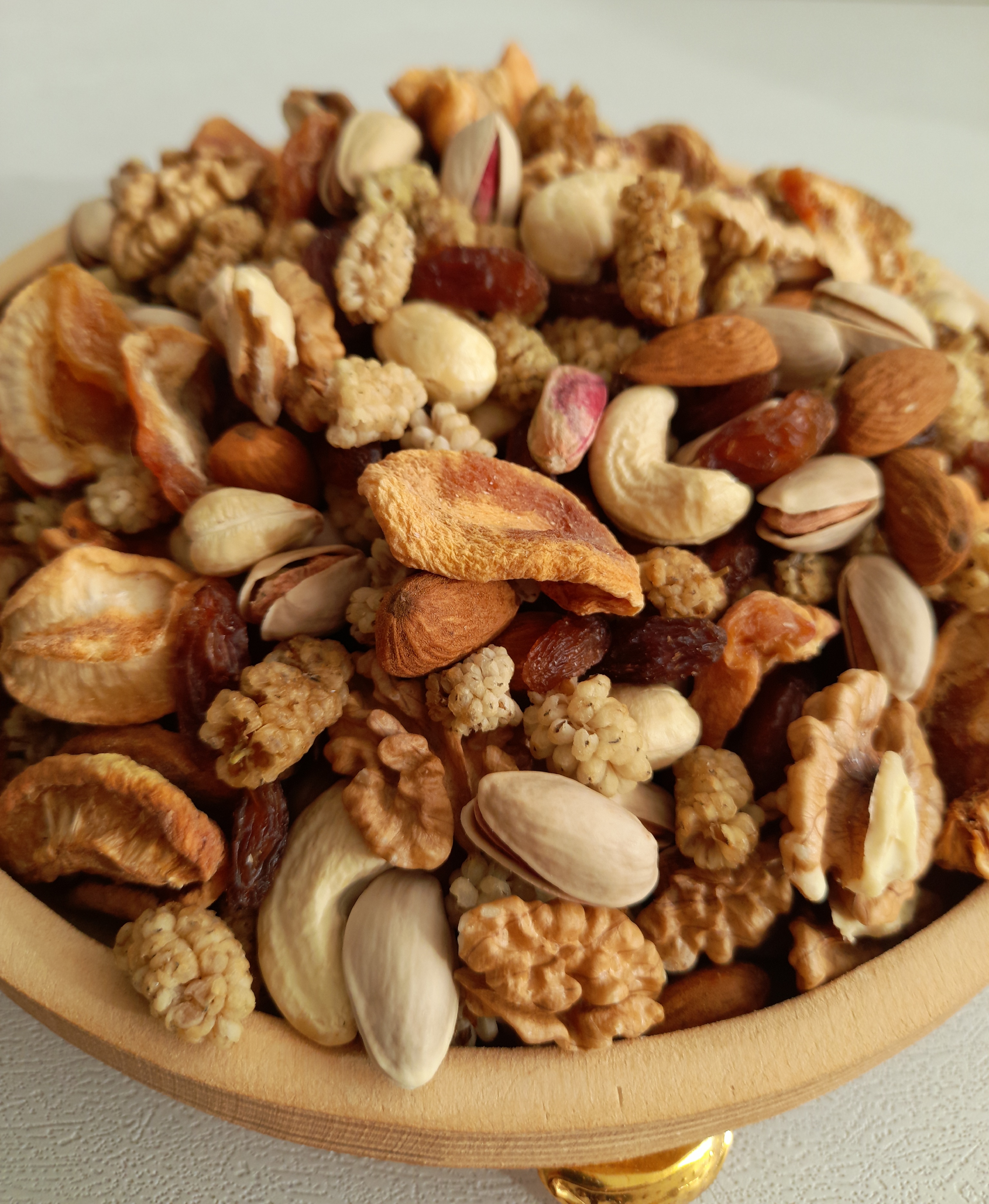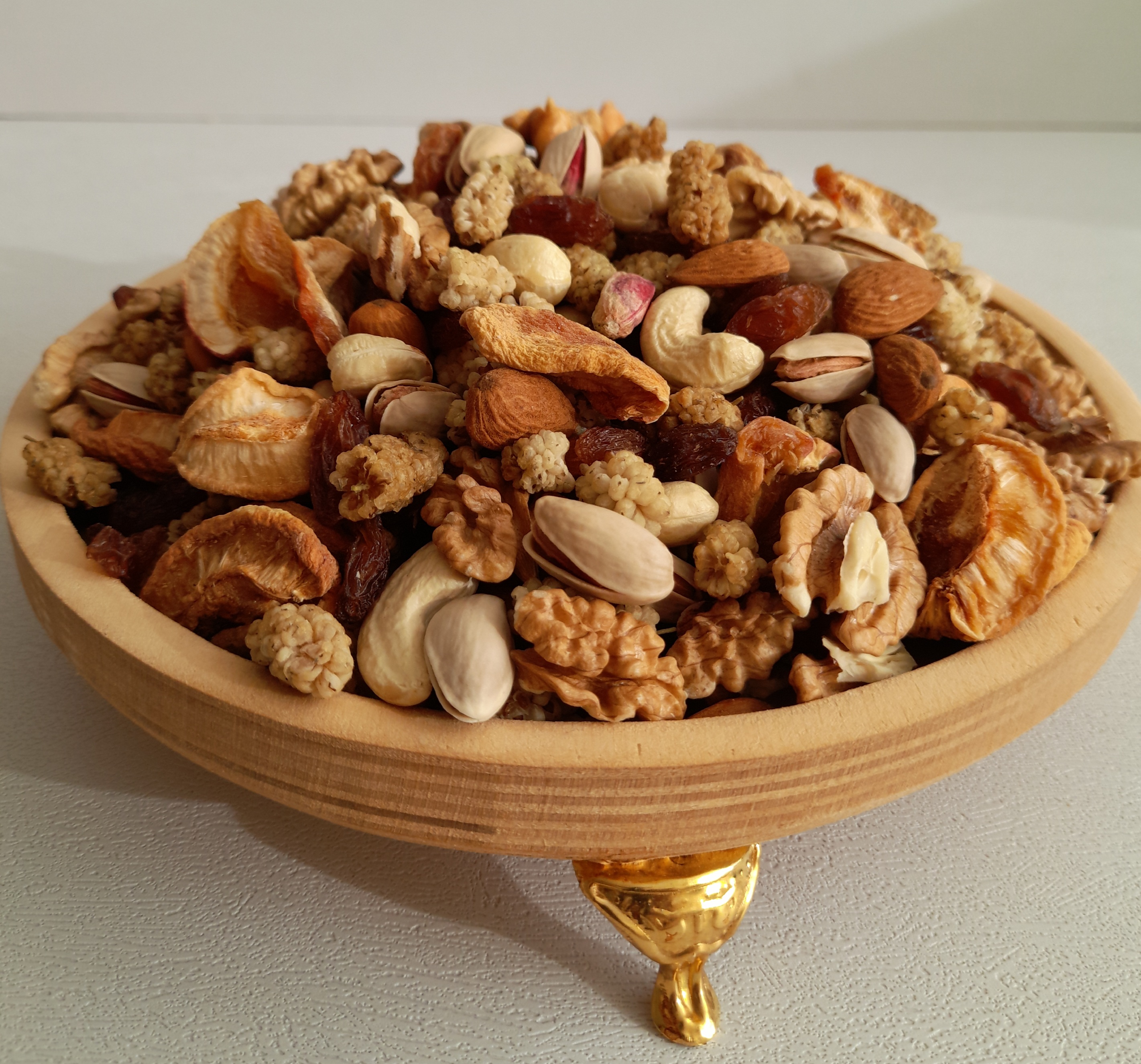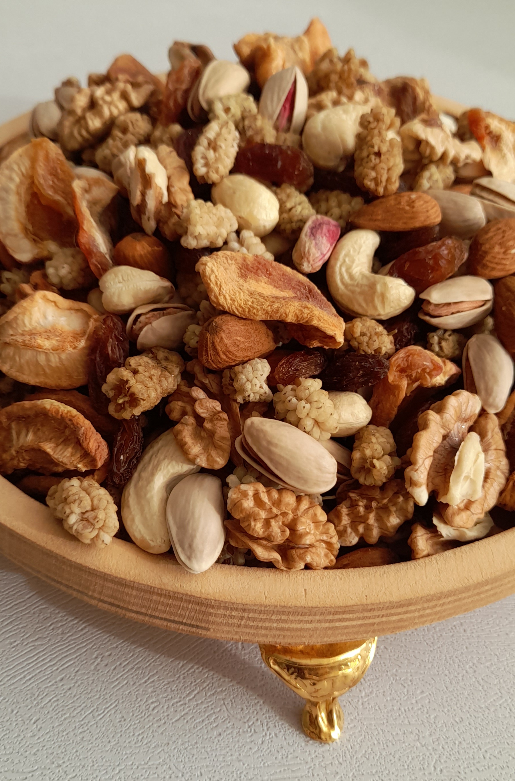 آجیل شیرین یا آجیل زمستانه که مناسب شبهای سرد و بلند پاییز و زمستان می باشد،تهیه شده از مغزهای تازه امسالی با کیفیت شامل مغز بادام خام با کیفیت ایرانی و پسته اکبری خام درجه یک و مغزبادام هندی خام سایز ۳۲۰درجه یک ،مغز گردو ایرانی،توت خشک ممتاز،برگه زردآلو آفتابخشک و کشمش فخری ممتاز می باشد.ارسال برای شهر کرج رایگان میباشد ، .